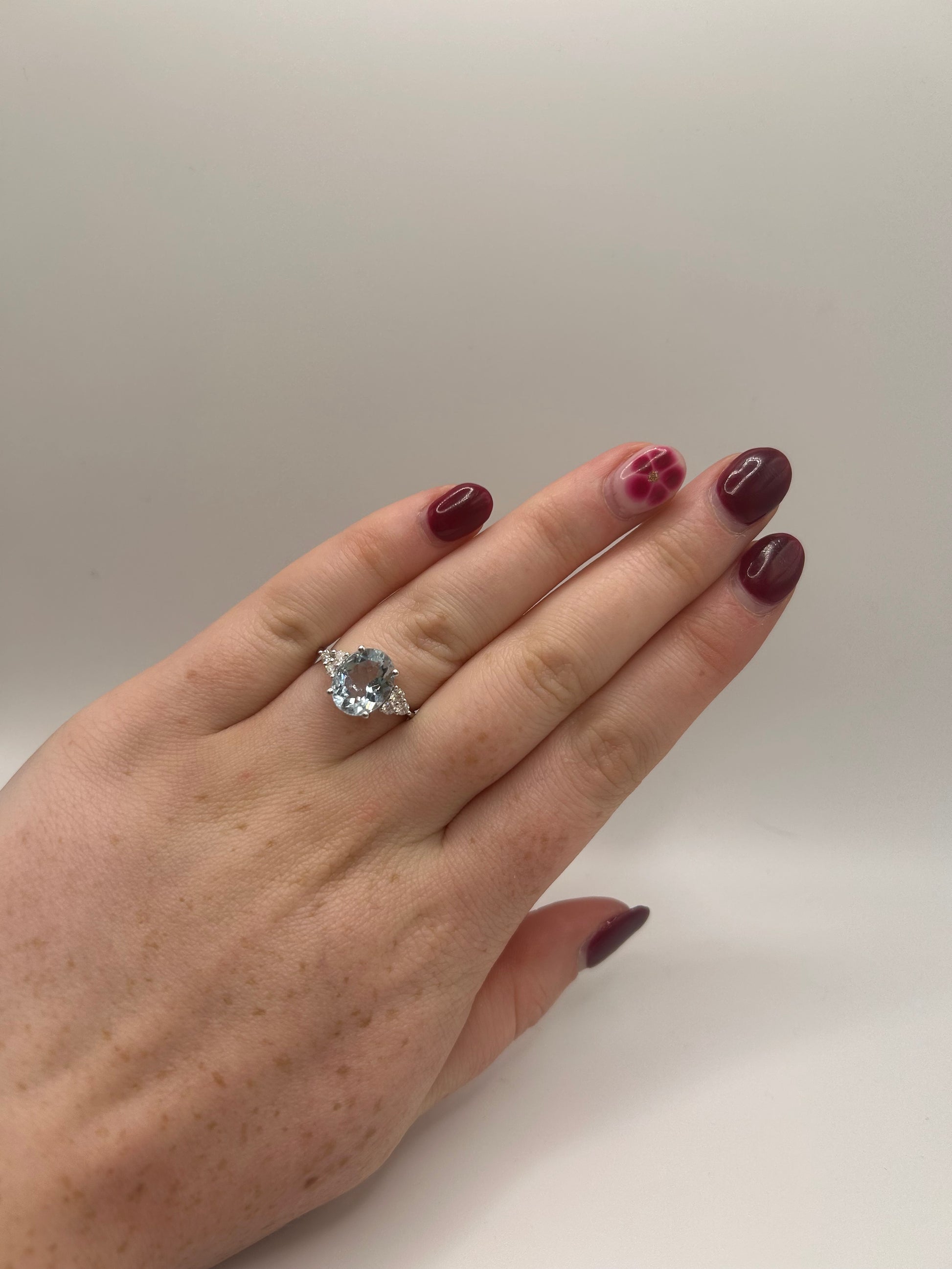 18ct White Gold Large Oval Cut Aquamarine and Diamond Ring